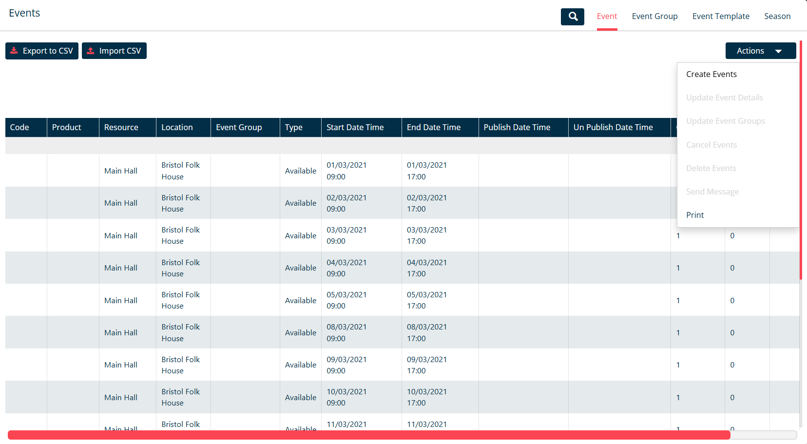 | Un Publish Date Time | The date (dd-mm-yyy) and Time (hh:mm:ss) that this event or availability will dissappear on the fron-end of the booking system. |